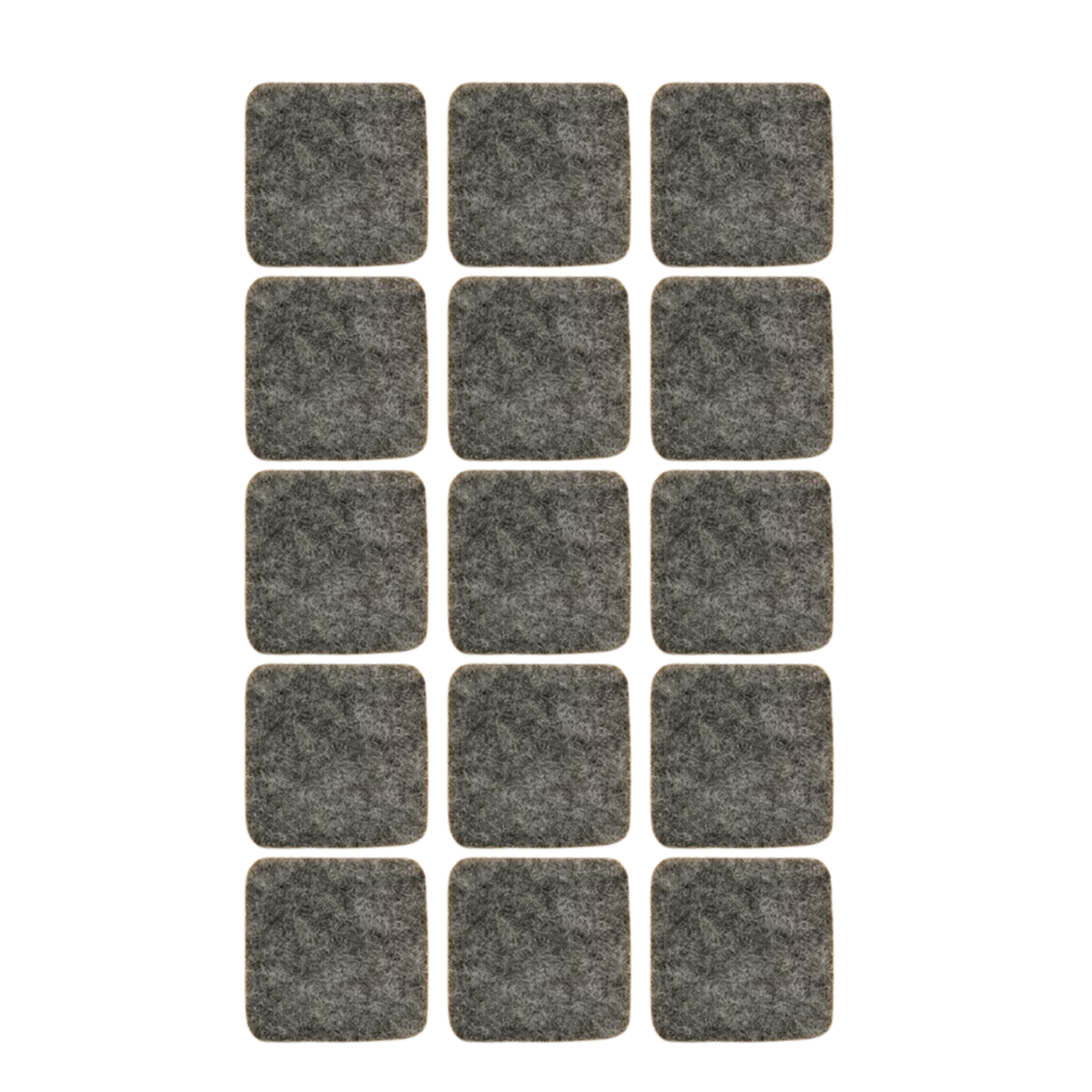 Zestaw 15 sztuk podkładek filcowych 25x25 mm.
