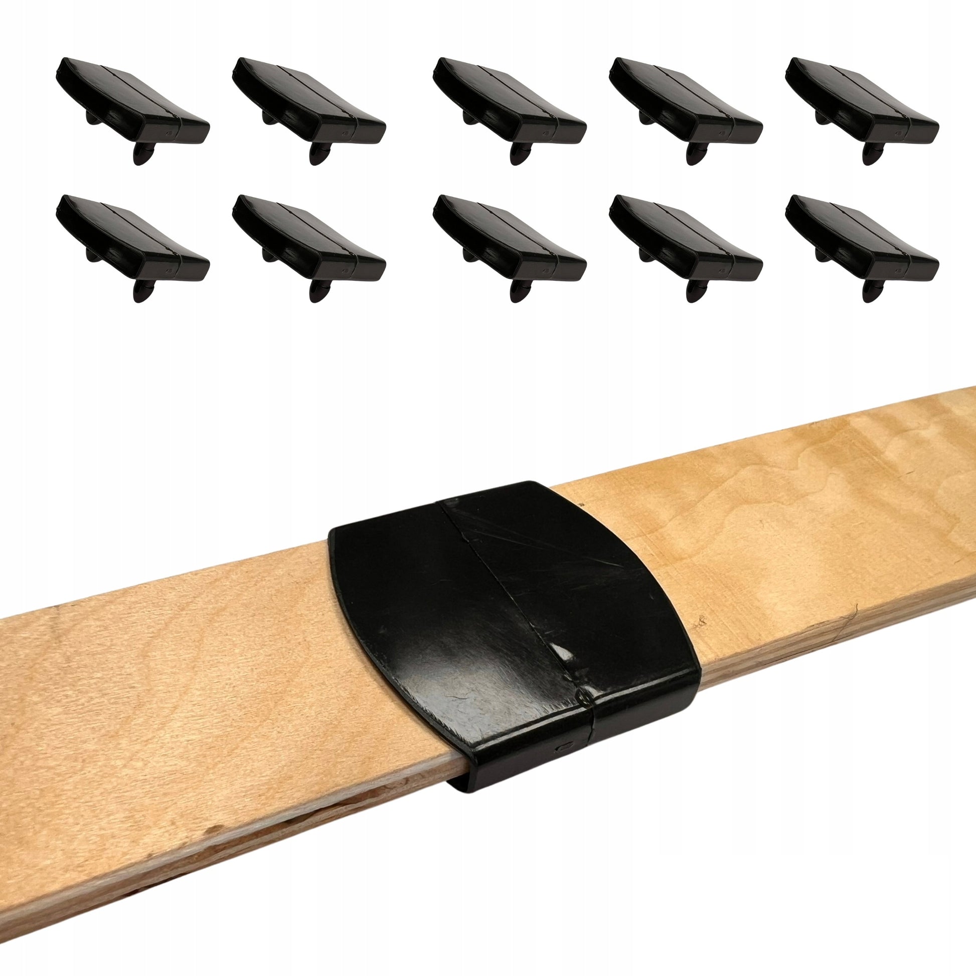 Wytrzymały uchwyt przeznaczony do montażu listew sprężynujących w łóżkach. Wykonany z wysokiej jakości tworzywa, zapewnia stabilne i bezpieczne mocowanie listew w stelażu łóżka. Uchwyt posiada dwa bolce montażowe, co ułatwia szybki i solidny montaż. Dzięki uniwersalnemu czarnemu kolorowi i solidnej konstrukcji, doskonale sprawdzi się w wielu modelach łóżek. Pasują m.in. do ramy IKEA Nyhamn