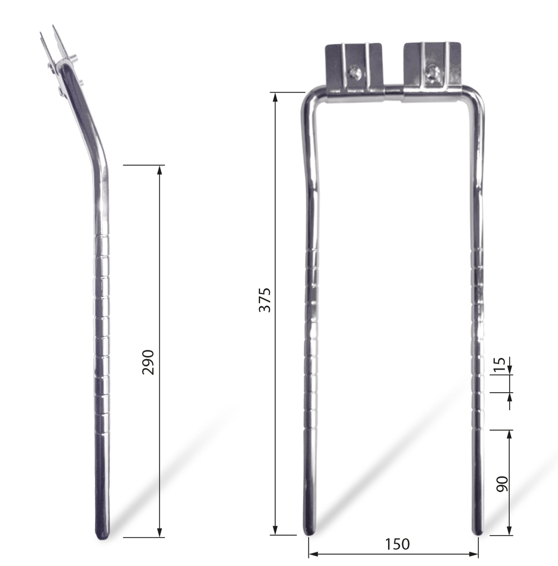 Zagłówek chromowany do mebli tapicerowane.